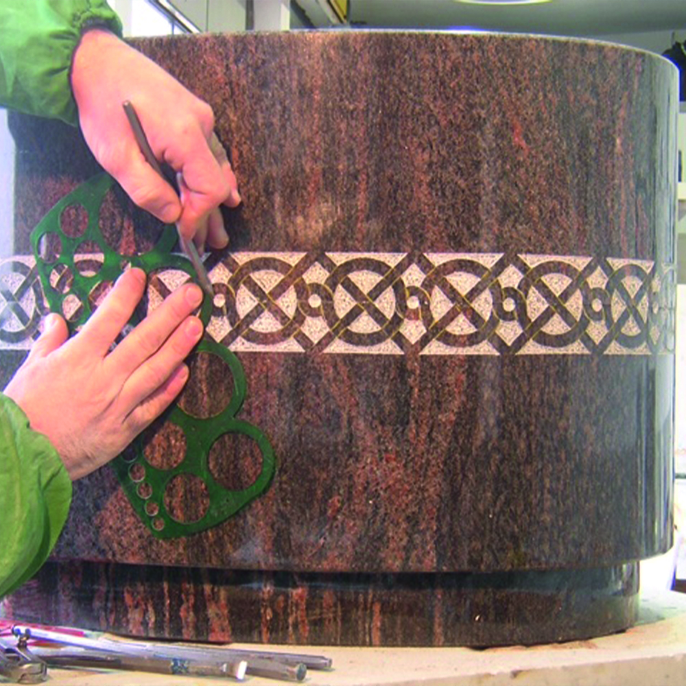 L’abilità dell’incisione artigianale, tramandata da generazione in generazione, si unisce ai moderni sistemi di lavorazione che rendono possibile anche decorazioni e disegni su marmo e pietra.